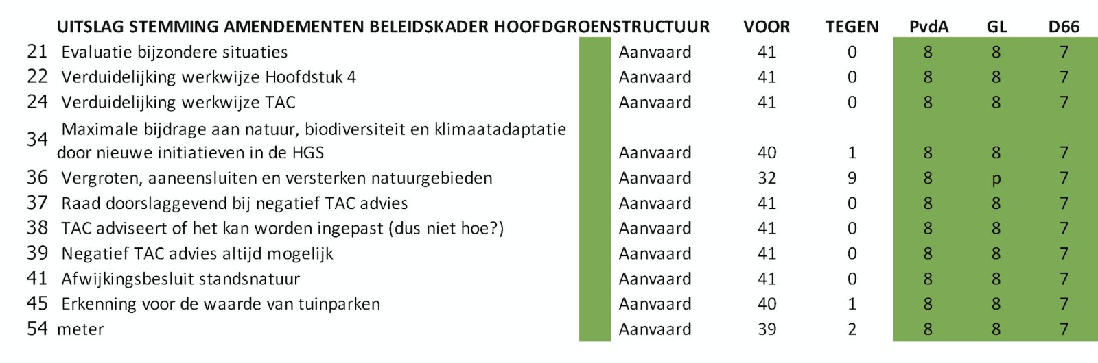 We beginnen met de amendementen die zijn aangenomen: