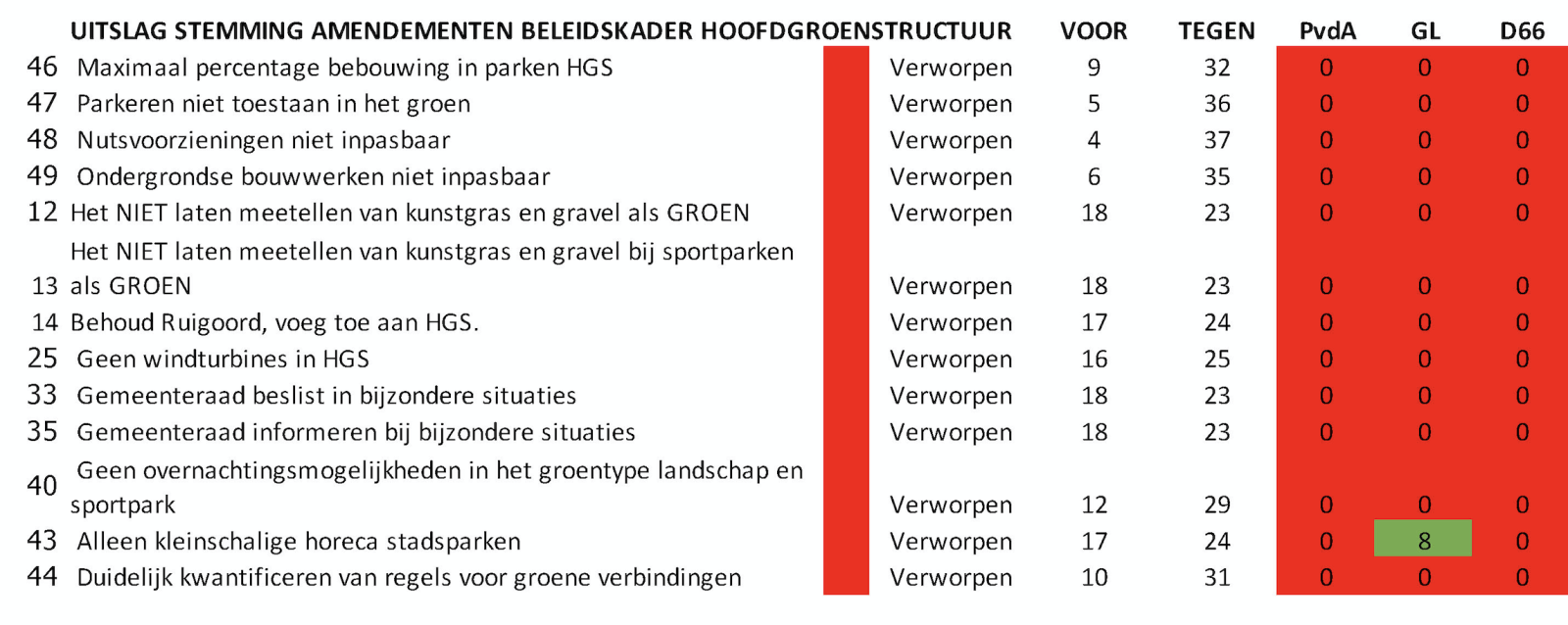 Korte uitleg vooraf: de coalitiepartijen stemmen meestal mee met hun wethouder. Vanuit fractiediscipline (en omdat het in het 'regeerakkoord' is afgesproken) worden amendementen die het voorstel van de wethouder in de weg zouden kunnen zitten meestal 'en bloc' afgewezen. Als het amendement 'leuk klinkt maar geen kwaad kan' dan stemmen de coalitiepartijen soms wel in met een amendement. Voor de duidelijkheid: dit fenomeen kan worden vastgesteld bij alle politieke partijen.