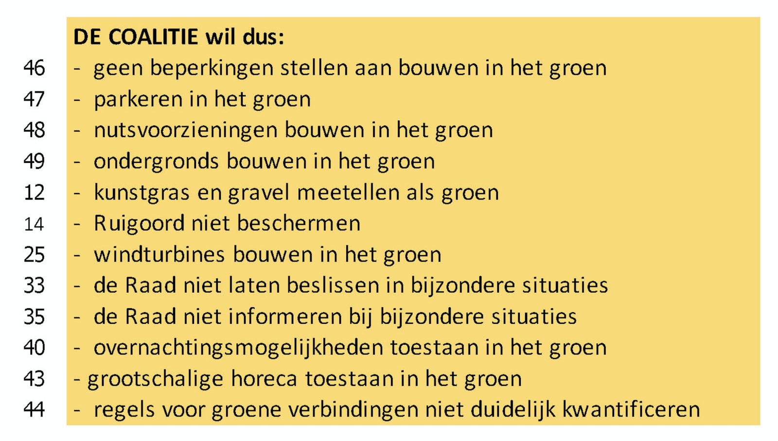 - we gaan natuurgebieden aaneensluitend maken (zonder criteria)